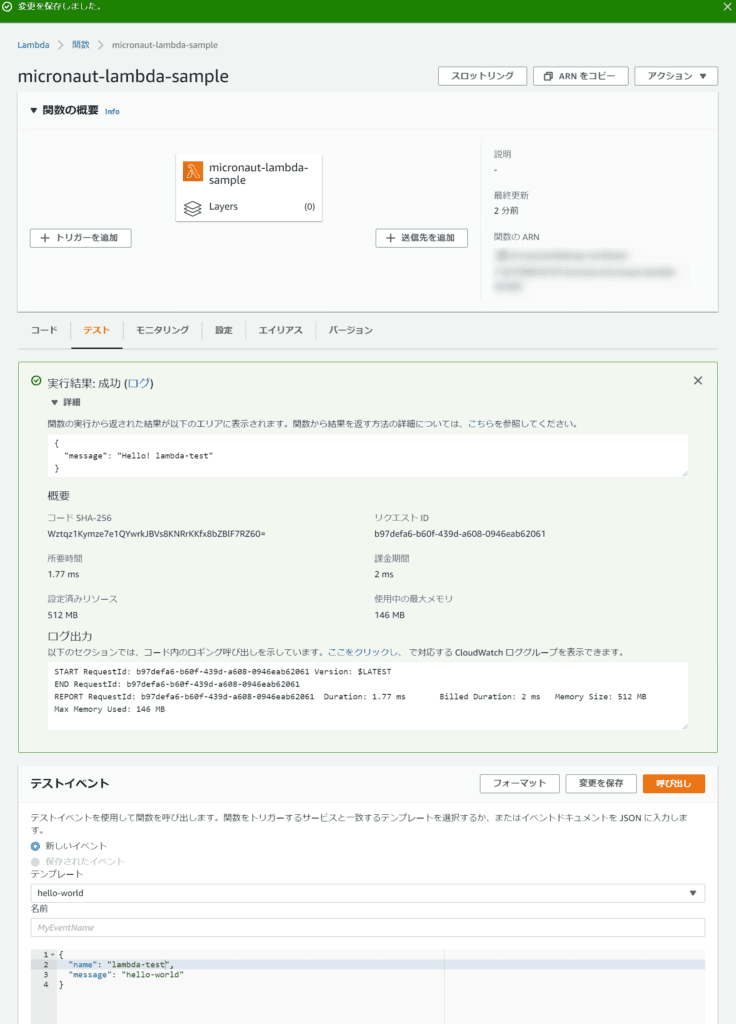 こちらも実際にLambdaデプロイしてテストしてみました。jarファイルのサイズは9.7MBと軽量で、高速にレスポンスも返ってくることを確認しました(ただし初回実行は10秒ほどかかります。LambdaでJavaランタイムを動かす際の制約)。