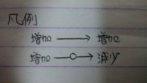こちらは思考概念図で、以下の凡例の通り、丸無し矢印は始点が増加すると終点も増加、白丸矢印は始点が増加すると逆に減少を表します。