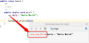 見てみると単純で、型を"var"に書き換えて宣言すれば良いだけです。後はJavaが勝手に型推論してくれるという寸法です。