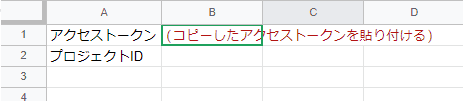 上記でコピーしたアクセストークンをスプレッドシートの「secrets」シートにあるB1セルに貼り付けてください。