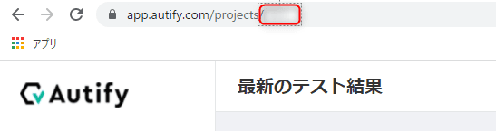 もうひとつ、AutifyのAPIを利用するために、プロジェクトIDを取得する必要があります。Autifyのログイン後トップ画面において、URLの projects/ の後の番号をコピーしてください。