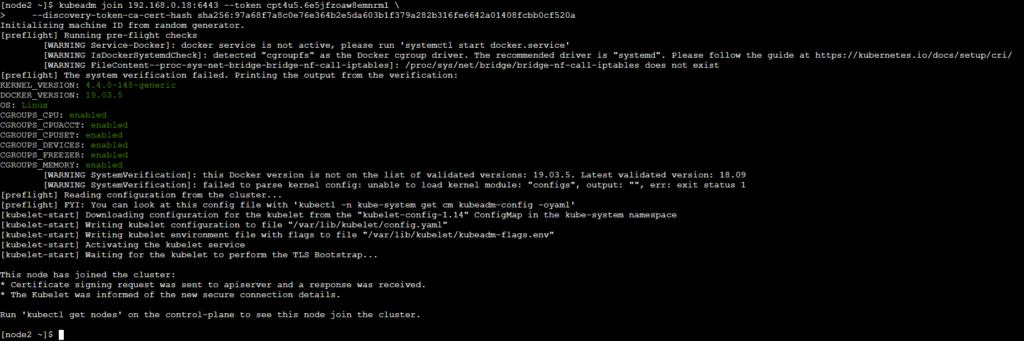 もし、二つより多くのnodeで試したい場合は本節の「 kubeadm join ~」を各nodeで繰り返し実行してください。