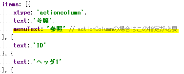 menuText要素にも名称を指定する必要があります。"actionColumn"コンポーネントのみの対応となりますので、直感的な実装方法ではないのですが、正しく表示させるようにすることは可能です。