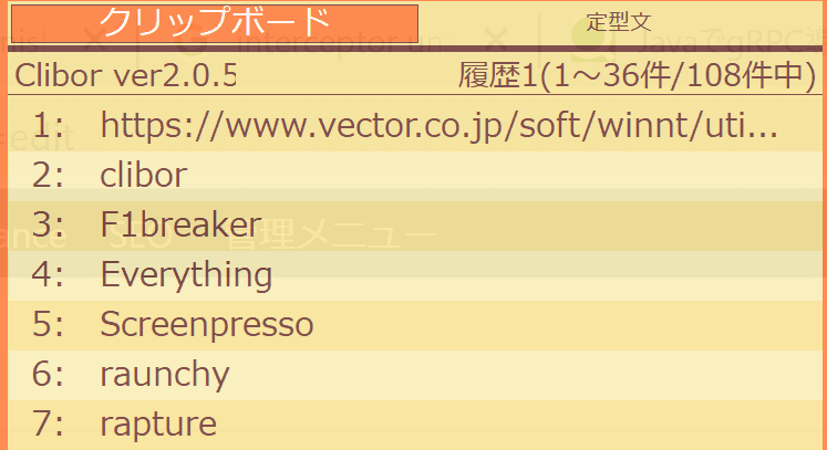クリップボード履歴管理ツールの定番です。コピーした文字列を何個も保持しているので、何個もコピー&ペーストする場合に一々コピーしなおさずとも履歴から選択して貼り付けられます。また、定型文設定もできますので、よく使う文字列はそこに設定しておくと大変便利です。