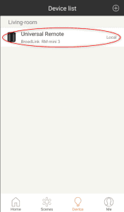 ④ Intelligent Home Center設定方法(リモコン編) ここからが大変地道な作業となります。ひたすら赤外線リモコンを一つづつポチポチしながら、それに名前をつけていきます。 「デバイス」を選択します。