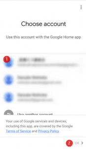 紐づけたいアカウントを選択してOKを押します。もしGoogleアカウントを持っていなければここで作成する必要があります。