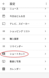 ② ショートカットの設定 ここが最後の大変なポイントです。これまでの設定で、例えば上記設定で「OK Google、エアコンをオンをつけて」と話しかければ家電を音声で操作できるようになりました。ただ、日本語として変ですよね?これをGoogle Homeのショートカットという機能を使って呼び出し方を変えます。そしてこれも、シーン名に対して一つづつ設定しなければならないので、かなり骨の折れる作業です。 メニューを開きます。