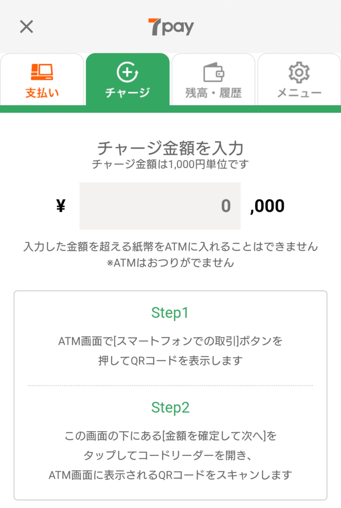 〇〇ペイは基本的にプリペイド(事前支払い式)なので、まずはチャージして入金しておく必要があります。そのチャージ方法は7payでは以下の5つが用意されています。