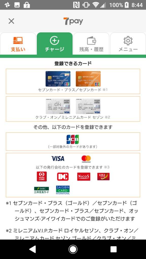 使用可能カードは、「セブンカード」系と「クラブ・オン」系のカード、それ以外は詳細に明かされていませんが、セキュア3D対応で、ユーザがそれを有効にしているカードが使えます。